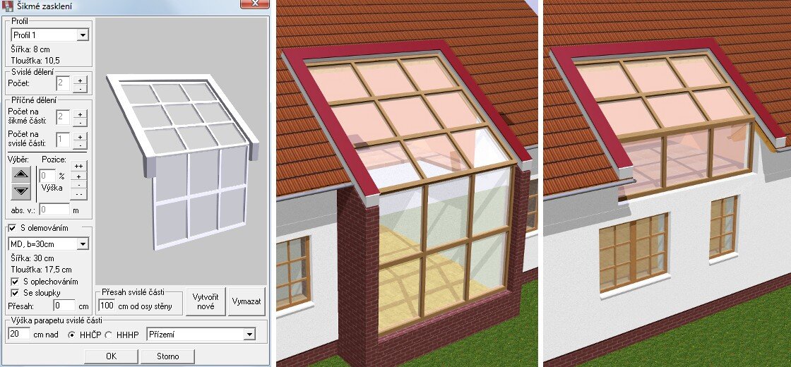 Parametrická tvorba zimních zahrad, okapů, členění ploch