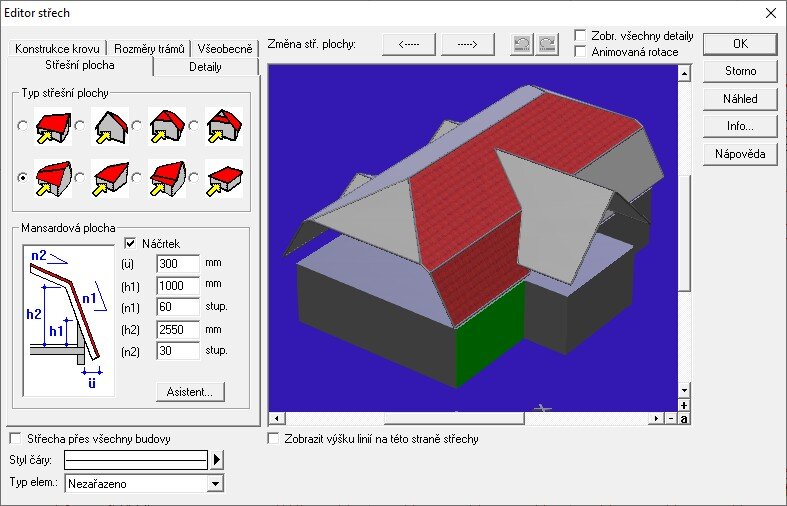 Parametrická tvorba střech, balkónů, zábradlí, komínů a arkýřů